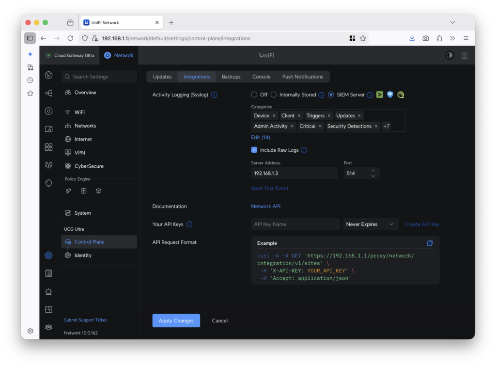 3. Configure your Ubiquiti gateway to send the logs